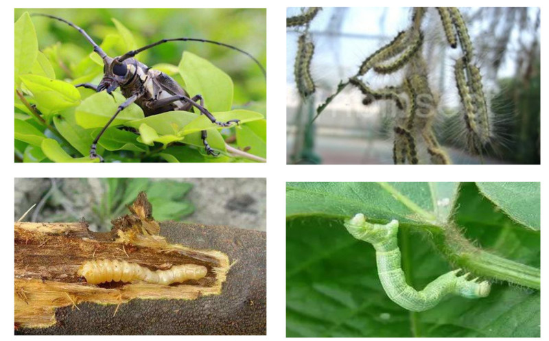 天牛、幼蟲、造橋蟲、吊絲蟲等。
